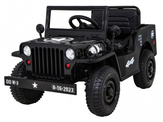 Autko Wojskowe Retro dla dzieci Czarny + Napęd 4x4 + Pilot + 2 Bagażniki + Wolny Start + MP3 LED