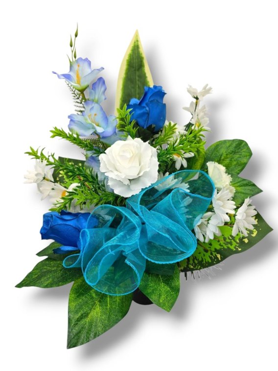 BIAŁO NIEBIESKI BUKIET WKŁAD DO WAZONU KWIATY NA CMENTARZ GRÓB POMNIK
