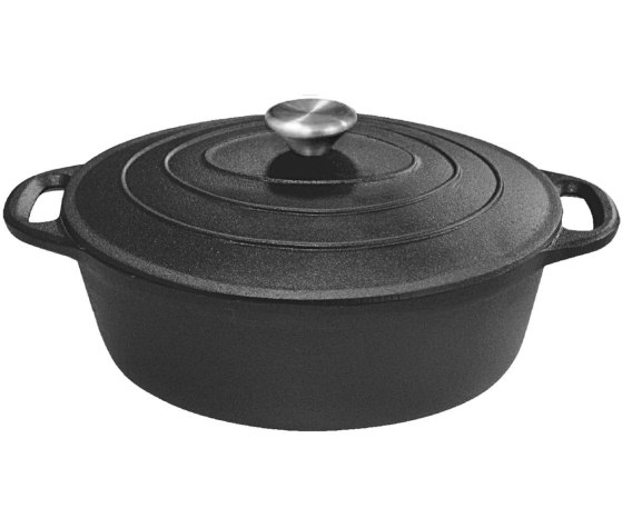 Żeliwo z którego jest wykonane naczynie jest grube i ciężkie (5.5kg) aby odpowiednio skumulować i utrzymać wysoką temperaturę.