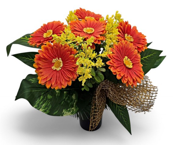 Kompozycje nagrobne z obciążeniem z wysokiej jakości sztucznych kwiatów i roślin.
