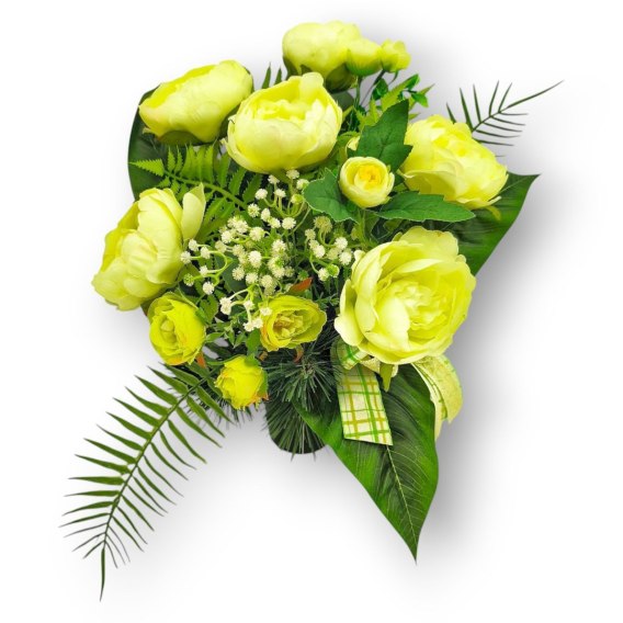 Kompozycje nagrobne z obciążeniem z wysokiej jakości sztucznych kwiatów i roślin.
