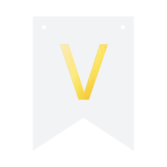 Biała flaga ze złotą literką "V" do stworzenia spersonalizowanego baneru tworzącego dowolny napis.