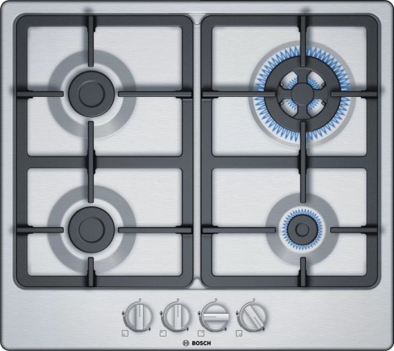 Bosch | PGH6B5B90 | Hob | Gas | Number of burners/cooking zones 4 | Rotary knobs | Stainless steel