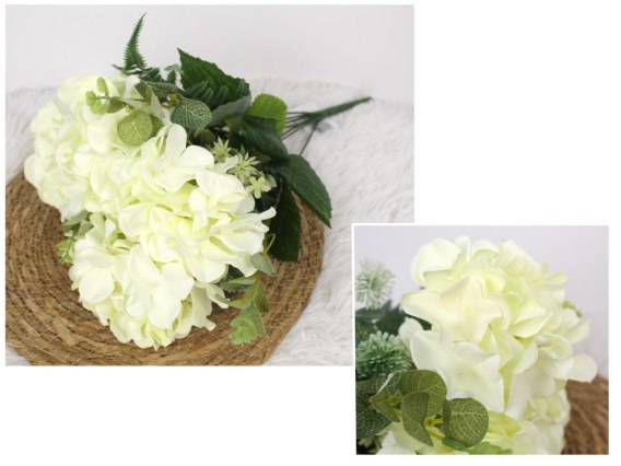 Bukiet sztuczny HORTENSJA wys. 47 cm, 7 łodyg (4 kwiaty 12x7 cm) ŚMIETANOWA