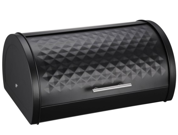 Chlebak KRISBERG DIAMOND o futurystycznym, nowoczesnym kształcie w klasycznej i uniwersalnej kolorystyce. Korpus produktu został wykonany z solidnego i trwałego metalu w czarnym wykończeniu wykończeniu. Posiada wygodną metalową pokrywę z również metalową rączką. Pokrywa z wykończeniem nawiązującym do diamentu nadaje chlebakowi oryginalnego charakteru.