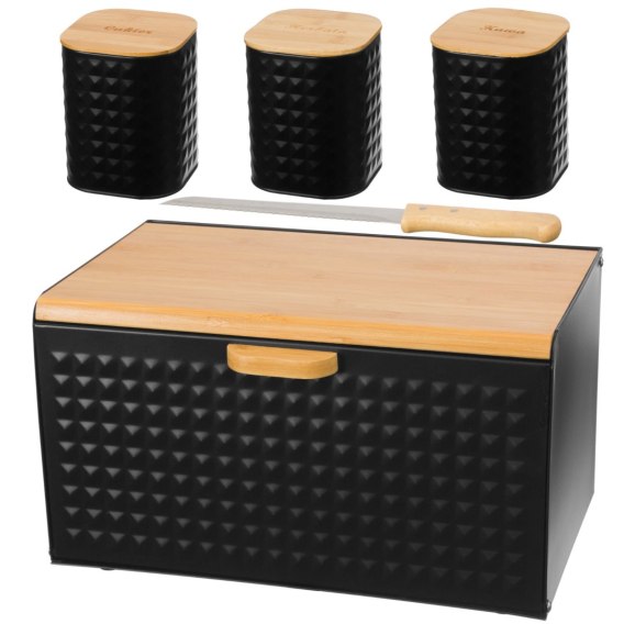 Elegancki zestaw w którego skład wchodzi chlebak oraz 3 pojemniki firmy BRUNBESTE.