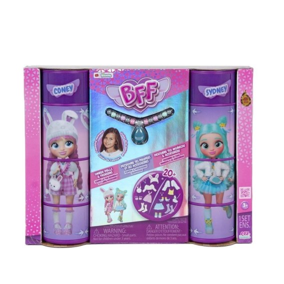 Odkryj dwupak BFF od Cry Babies z Coney i Sydney! Teraz możesz mieć 2 ze swoich ulubionych postaci BFF! Zestaw zawiera laleczki Coney i Sydney, które zachwycają modnym strojem i długimi, kolorowymi włosami, szklanymi oczami oraz ruchomymi częściami ciała. Dodatkowo w zestawie znajduje się naszyjnik dla dziecka, dzięki któremu będzie mogło wystroić się tak, jak jego ulubione BFF! Obróć tubą i zmieniaj pozy! Rozpakuj szafę BFF i odkryj ponad 19 niespodzianek! Zapoznaj się z przygodami BFF w nowym serialu animowanym BFF od Cry Babies na YouTube! Zestaw zawiera: 2 x Laleczka 5 x Elementy odzieży 2 x Torba 1 x Czapka 2 x Spinki do włosów 2 x Para butów 2 x Para skarpetek 2 x Naszyjnik 1 x Naszyjnik dla dzieckaIMC916241;PLK;CRY BABIES MT ICY WORLD - KEEP ME WARM;;Kolekcja Icy World Keep Me Warm od Cry Babies Magic Tears jest już dostępna! Do zebrania jest ponad 12 laleczek, z których każda ubrana jest w uroczy, ciepły strój. Gdy naciśniesz na ich brzuszki, zapłaczą magicznymi łzami. Zestaw zawiera 8 akcesoriów: butelkę dla niemowląt, smoczek, gogle narciarskie, strój, rękawiczki lub szalik, parę butów i arkusz naklejek. Wlej w laleczkę wodę za pomocą magicznej butelki i naciśnij na jej brzuszek, a zapłacze prawdziwymi łzami! Odkryj serial animowany Cry Babies Magic Tears na YouTube! Zestaw zawiera: 1 x laleczka 1 x butelka dla niemowląt 1 x smoczek 1 x gogle narciarskie 1 x strój 1 x rękawiczki/szalik 1 x para butów 1 x arkusz naklejek Dla dzieci powyżej 3. roku życia.