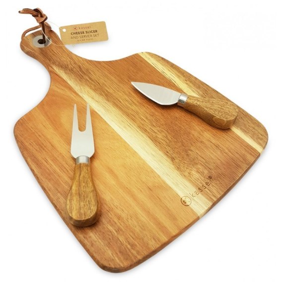 Akacjowa deska do krojenia serów firmy KASSEL. Ekologiczny materiał użyty do produkcji deski zapewnia dużą trwałość, solidność i estetyczny wygląd. Drewno akacjowe jest twarde i wytrzymałe, bardziej odporne na ścieranie i uszkodzenia, a jednocześnie nie tępi noży. Deska może służyć do serwowania serów i wędlin.