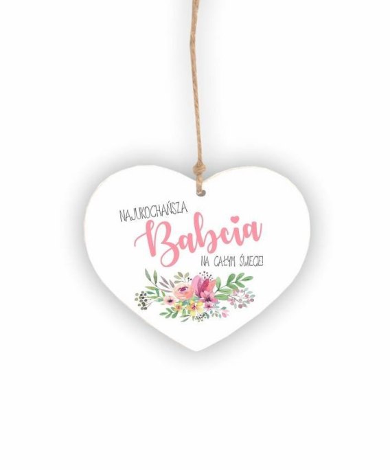 Drewniana zawieszka Serce Najukochańsza Babcia