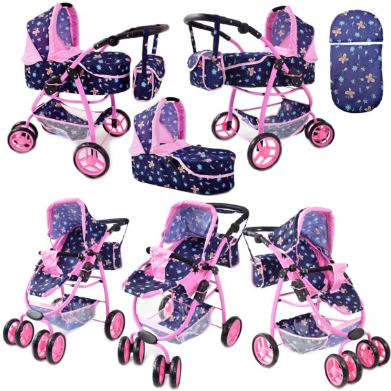 Wózek 9662 M1016+PINK - granatowy w motylki - bawełna