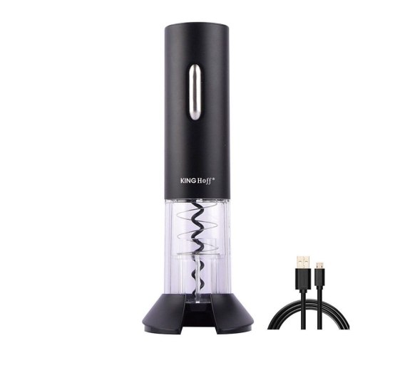 Korkociąg elektryczny do wina KINGHOFF którym bez problemu otworzysz każdą zakorkowaną butelkę. Zasilany na akumulator (ładowanie USB) i bezprzewodowy, co pozwala Ci swobodnie z niego korzystać, bez potrzeby podłączania go do stałego źródła zasilania. Do zestawu dołączony jest również obcinacz do folii będący jednocześnie podstawką na blat stołu.