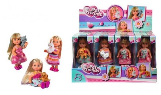 Laleczka Evi w letniej sukience, w zestawie z pieskiem, kotkiem lub króliczkiem. UWAGA! Towar wybierany losowo.