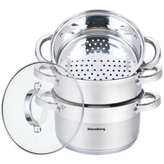 4 częściowy komplet garnków do gotowania na parze KLAUSBERG bazujący na garnku 2.5L / Ø18cm. Zestaw wykonany z wysokiej jakości stali nierdzewnej. Wykorzystana stal składa się z najlepszej jakości stopu powszechnie stosowanego w światowej klasy produktach, co gwarantuje jej wysoką odporność na korozję oraz bardzo dobrą wytrzymałość. Zastosowany materiał umożliwia szybkie podgrzanie potraw i przez dłuższy czas utrzymuje ciepło.