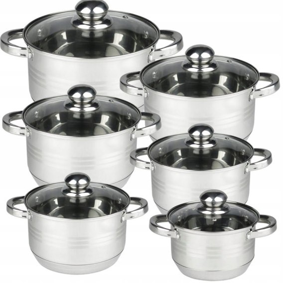 12 elementowy komplet garnków ROSSNER ze stali nierdzewnej