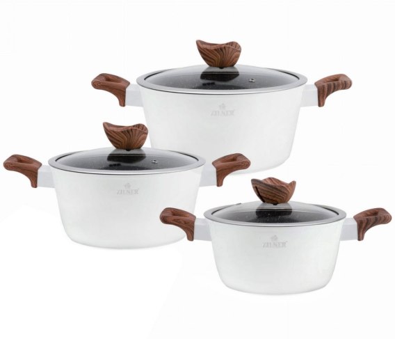 Wysokiej klasy 6-częściowy zestaw garnków z nieprzywieralna powłoką granitową firmy ZILNER White Lilly