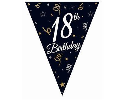 Girlanda papierowa, flagi, chorągiewki czarne, 18 Urodziny, 270 cm