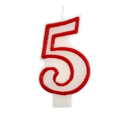 Godan - Świeczka cyferka "5", czerwony kontur 7 cm