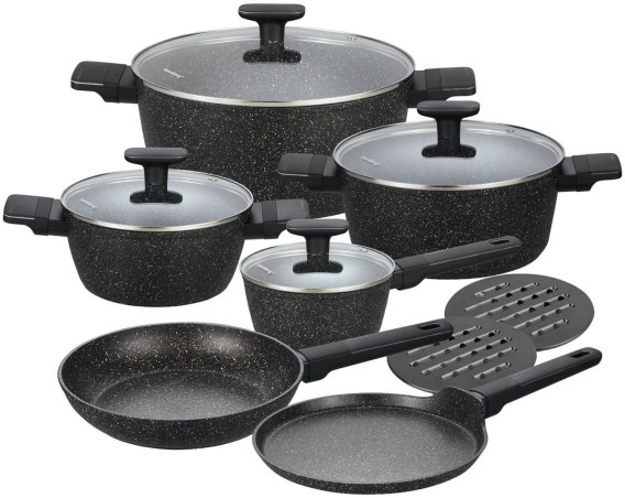 12-elementowy zestaw garnków i patelni z marmurkową powłoką nieprzywierającą marki KLAUSBERG.