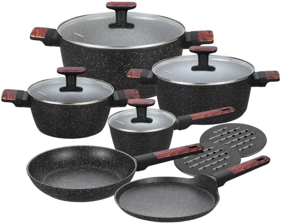 12-elementowy zestaw garnków i patelni z marmurkową powłoką nieprzywierającą marki KLAUSBERG.