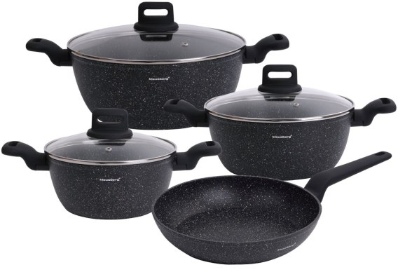 7-elementowy zestaw garnków i patelni z marmurkową powłoką nieprzywierającą marki KLAUSBERG.