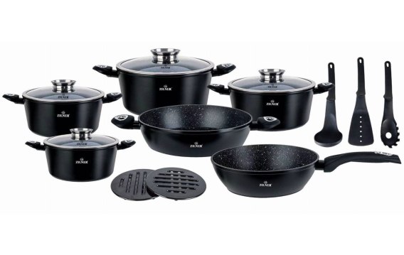 15-częściowy zestaw garnków z przyborami kuchennymi z nieprzywieralna powłoką marmurową firmy ZILNER
