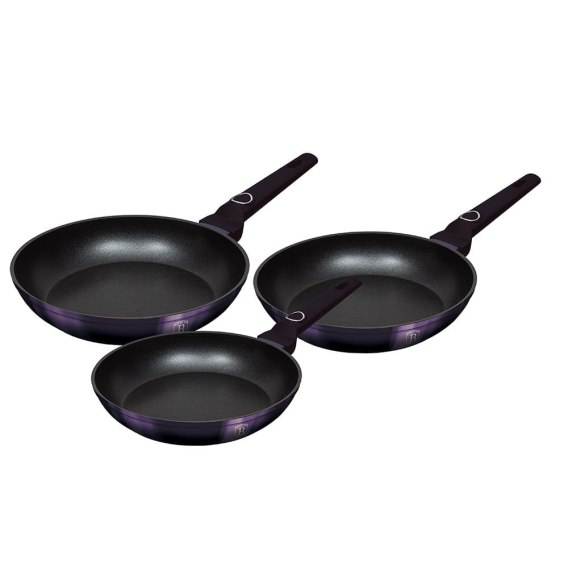 Zestaw 3 patelni z nieprzywierającą powłoką tytanową o średnicy 20, 24 i 28cm marki BERLINGER HAUS z serii PURPLE ECLIPSE