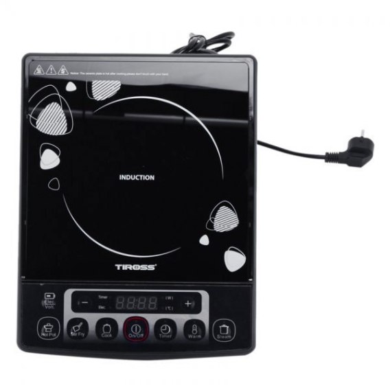 KUCHENKA INDUKCYJNA 1-PALNIKOWA 2000W TIROSS. Eleganckie urządzenie kompaktowe które nie zajmuje zbyt wiele miejsca. Powierzchnia płyty wykonana z materiału ceramicznego typu C - jednego z najbardziej wytrzymałych materiałów odpornych na zarysowania, bardzo łatwa do czyszczenia, a także na wysokim poziomie estetyki.