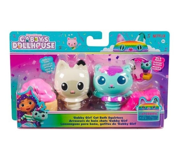 Gabby's Dollhouse Gabby Girl Cat Bath Squirters to zabawna kolekcja zabawek, która zapewni radość i rozrywkę podczas kąpieli dziecka. Ten zestaw figurek jest oparty na popularnym serialu animowanym dla dzieci Gabby's Dollhouse i zawiera ulubione postacie z kreskówki.