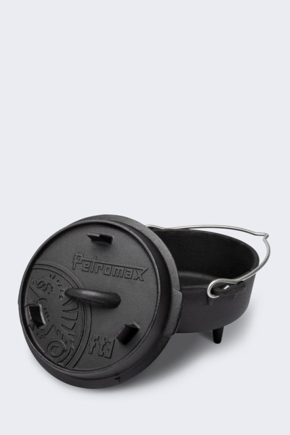 Żeliwny kociołek holenderski Petromax, często nazywany Dutch Oven, jest idealny do gotowania i pieczenia na świeżym powietrzu oraz w domowym piekarniku. Żeliwne garnki istnieją od XVIII wieku, a już wtedy doceniano ich wyjątkowe właściwości. Petromax kontynuuje tę tradycję, wzbogacając kociołek o liczne wyrafinowane detale. Dzięki doskonałym właściwościom żeliwa i specjalnej strukturze powierzchni, ciepło jest efektywnie magazynowane i równomiernie rozprowadzane. Wstępnie obrobiona powierzchnia (sezonowane wykończenie) eliminuje konieczność wstępnego wypalania, co pozwala na natychmiastowe użycie kociołka. Na zewnątrz można go używać na otwartym ogniu lub z węglem drzewnym. Podwyższona krawędź pokrywy umożliwia umieszczenie żaru lub węgla na kociołku, co zapewnia równomierne podgrzewanie z każdej strony, idealne na przykład do pieczenia chleba. Kociołek wyposażony jest w liczne detale, które ułatwiają obsługę i zwiększają przyjemność gotowania. Solidny uchwyt umożliwia bezpieczne podnoszenie kociołka, otwór na termometr pozwala na sprawdzenie temperatury bez konieczności podnoszenia pokrywy. Uchwyt pokrywy ułatwia podnoszenie gorącej pokrywy, którą można również używać jako patelnię, odwracając ją do góry dnem. Kociołek posiada klasyczny design Petromax: pokrywę zdobi eleganckie logo Petromax, będące symbolem doskonałej jakości i wysokiej klasy produktów. Najważniejsze funkcje i elementy produktu: • Pojemność kociołka: 3 l • Przeznaczenie 1 - 3 osób • Materiał: Żeliwo • Można używać na wszystkich płytach grzewczych, w tym na kuchence indukcyjnej • Doskonała dystrybucja ciepła • Efekt nieprzywierania • Łatwa w utrzymaniu czystości • Wymiary kociołka: 12 x 24,4 x 21 cm(wys. x szer. x gł.) • Waga kociołka: 4,4 kg