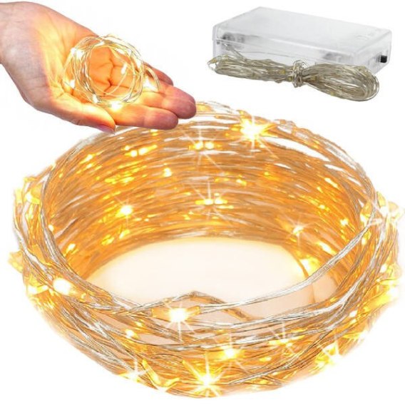 Diody są wkomponowane w drucik tzn. wraz z nim tworzą jedną ciągłą linię i nie odstają od drucika jak w standardowych lampkach. Idealne do podświetlenia świątecznej dekoracji, kompozycji kwiatowej, transparentnego balonu lub samodzielny element dekoracyjny. Dzięki ich własnemu bateryjnemu zasilaniu można je umiejscowić w dowolnym miejscu. Super dekoracja na wesele, urodziny i inne imprezy okolicznościowe.