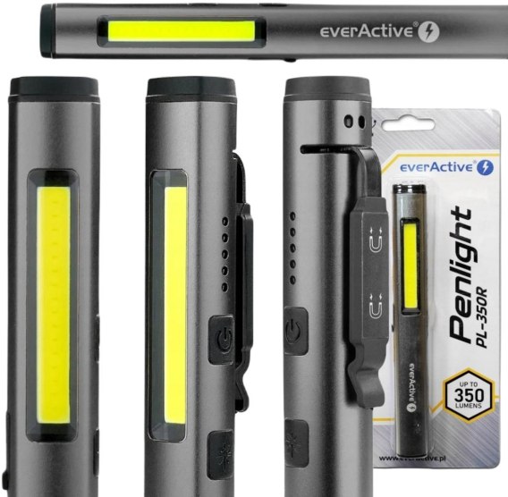 Latarka warsztatowa inspekcyjna COB LED UV Laser everActive PL-350R 350 lumenów IP54 z magnesem