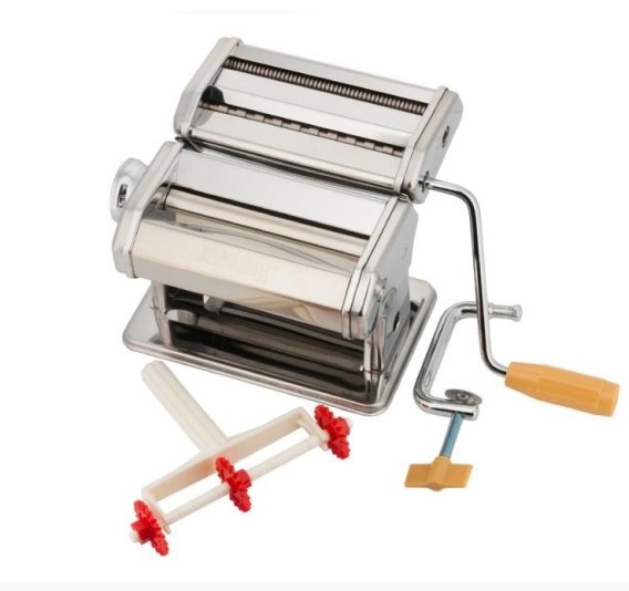 Bardzo ciężka i stabilna. Urządzenie składa się z wałkowarki oraz wykrojnika do makaronu.