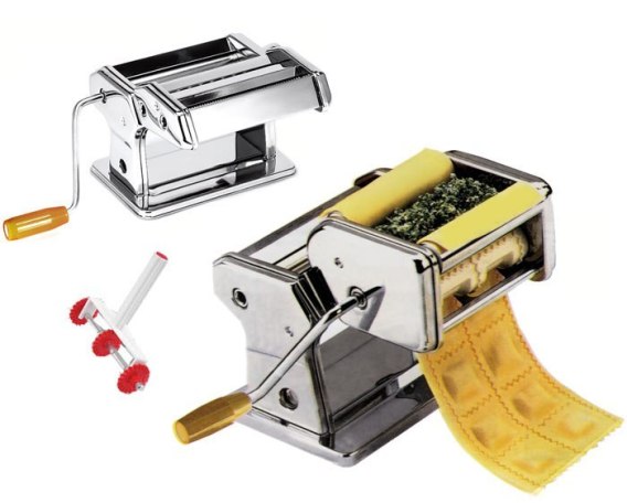 W komplecie znajduje się WYKROJNIK DO MAKRONÓW oraz MASZYNKA DO PIEROŻKÓW RAVIOLI.