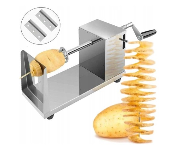 Twórz zakręcone ziemniaki na patyku z profesjonalną maszynką marki BRUNBESTE! To niezawodne urządzenie wykonane ze stali nierdzewnej, idealne dla gastronomii i domowych kuchni. Dzięki solidnej konstrukcji, precyzyjnym ostrzom oraz wygodnej korbce, przygotowanie spiralnych frytek stanie się szybkie, łatwe i przyjemne.