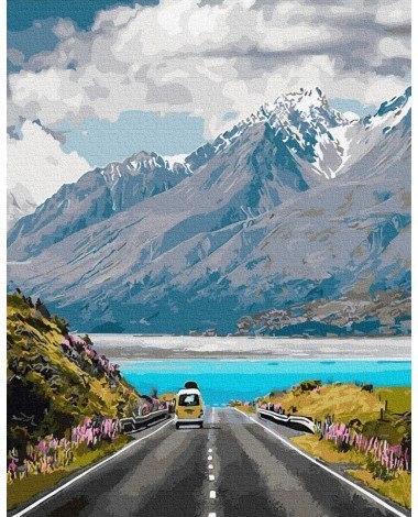 • Malowanie po numerach Podróż w Góry 40x50 Płótno + Farby + Pędzle