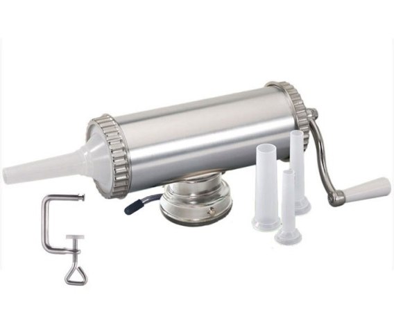 Ręczna nadziewarka o wielkości wsadu mięsnego 2.5kg (5lbs) jest idealnym urządzeniem do napełniania farszem osłonek przy wyrobie wędlin, przeznaczonym dla gospodarstw domowych oraz małych masarni lub sklepów mięsnych. Nadziewarki umożliwiają produkcję szerokiego asortymentu kiełbas, od kabanosów i parówek do klasycznych kiełbas oraz salami w zależności od wielkości lejka użytego do napełniania.