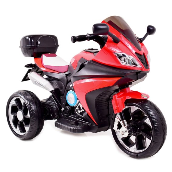Motor FH-605 z światłami i świecącym kuferkiem, napędzany dwoma mocnymi silnikami z całą pewności zainteresuje młodego wielbiciela motocykli.