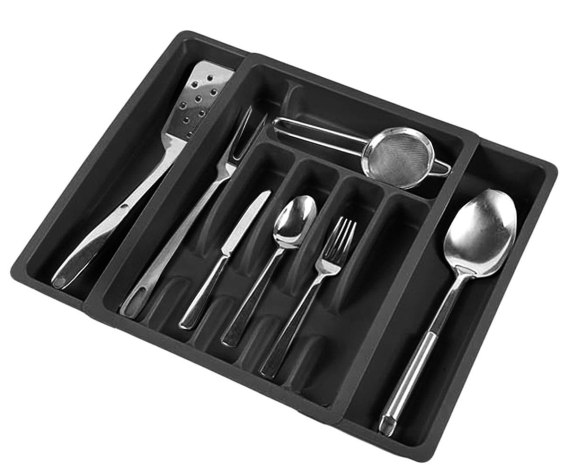 Wkład rozsuwany na sztućce do szuflady BRUNBESTE. Dzięki regulowanemu płynnie rozmiarowi można dopasować go do szuflad o szerokości od 28,5 do 47cm. Pozwoli na uporządkowanie sztućców oraz przyborów kuchennych w szufladach.