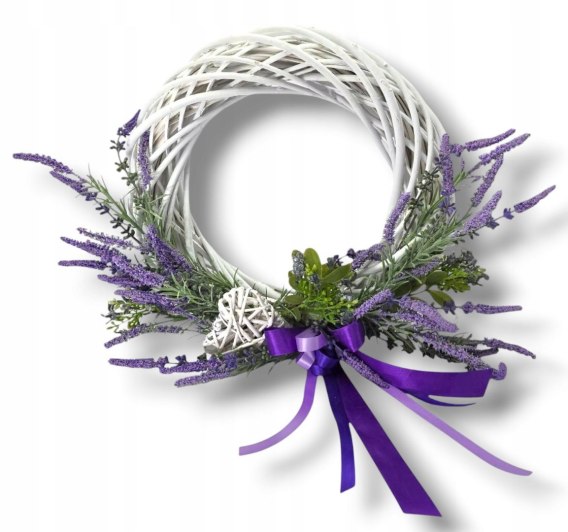 Wprowadź do swojego wnętrza odrobinę uroku i świeżości dzięki wyjątkowemu wiankowi dekoracyjnemu! Subtelna kompozycja lawendy, zieleni i białej plecionki sprawia, że będzie on doskonałą ozdobą zarówno do wnętrz, jak i na drzwi wejściowe. Idealny jako całoroczna dekoracja, a także na specjalne okazje, np. święta, wesela czy jako stylowy prezent.