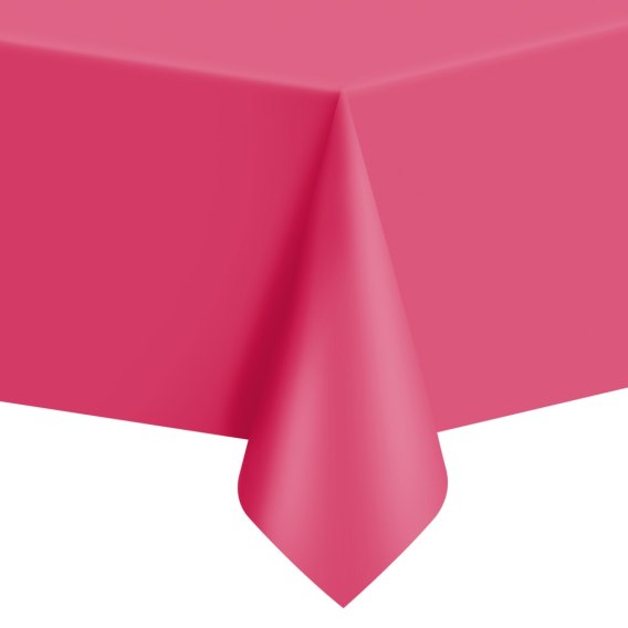 Foliowy obrus w kolorze ciemno różowym.
