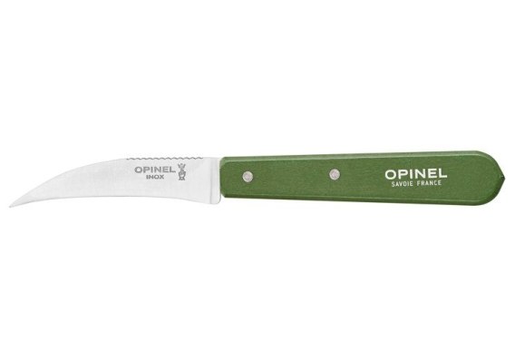 Uniwersalny nóż z kolekcji kuchennej Opinel'a- Essientiels. Głownia wykonana jest z nierdzewnej i modyfikowanej szwedzkiej stali Sandvik 12C27. Jej wygięte ostrze jest bardzo stabilne i trwałe. Zapewnia także ponadprzeciętne właściwości tnące. Unikalne zakrzywione ostrze sprawia, że jest on bardziej zwinny, idealny do krojenia miękkich owoców, takich jak nektarynki czy brzoskwinie, Wyprofilowaną rękojeść wykonano z naturalnego drewna grabu. Doskonale leży w dłoni i zapewnia wysoki komfort pracy.