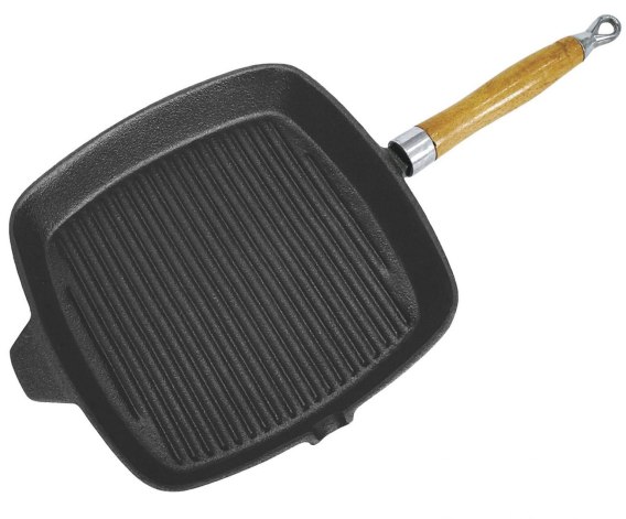Ciężka żeliwna patelnia grillowa o wymiarach 26 x 26 x 3.5cm