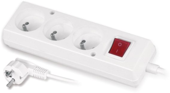 Przedłużacz z trzykrotnym gniazdem z wyłącznikiem 3x2p+Z 10A 5m biały