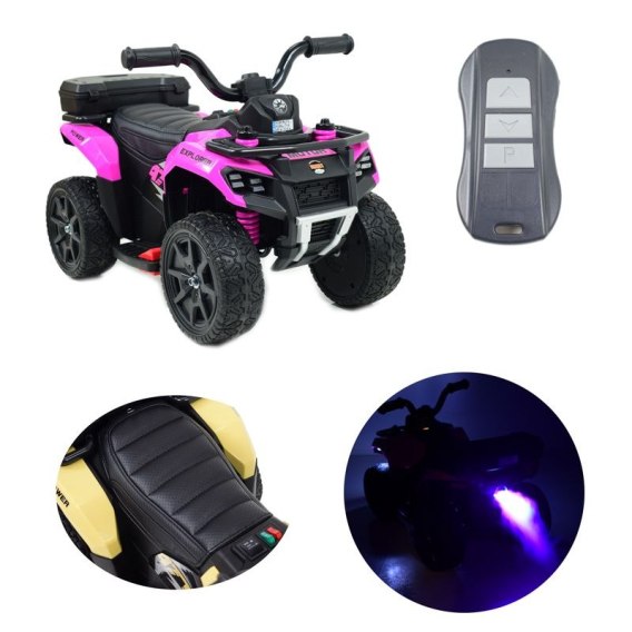 QUAD NA AKUMULATOR EXPLORER - PILOT, IMITACJA WYDECHU, MIĘKKIE KOŁA, SKÓRA/GTS1155