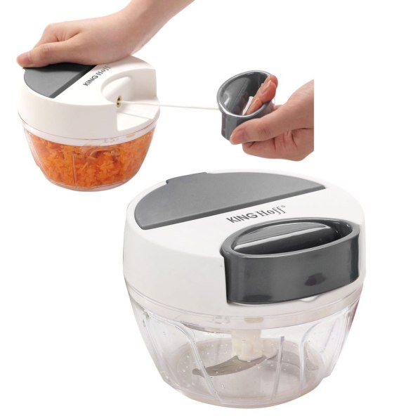 Rozdrabniacz kuchenny z mechanizmem sznurkowym KINGHOFF do szybkiego i skutecznego siekania owoców, warzyw, ziół i innych składników