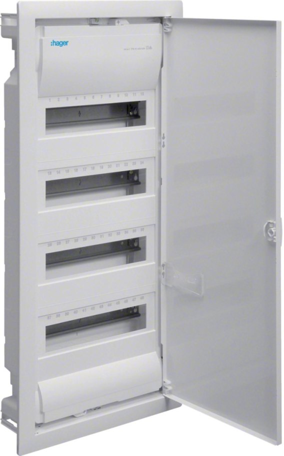 Rozdzielnica podtynkowa z drzwiami metalowymi, 4 rzędy, 48 modułów, IP30, HAGER Volta VU48NE