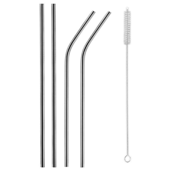 W zestawie znajdują się 2 słomki proste i 2 słomki zgięte - pozwoli to odpowiednio dopasować słomkę do naczynia lub preferencji. Do kompletu dołożony jest także czyścik, pozwoli zadbać o dokładną czystość wewnątrz słomki.