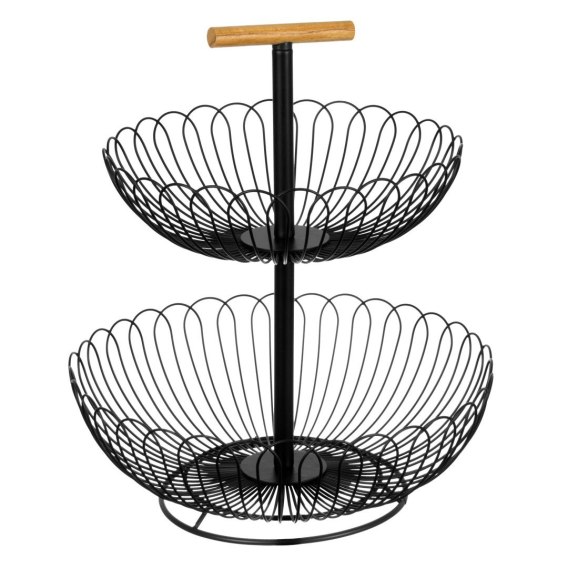 2-poziomowa patera na owoce wykonana ze stali lakierowanej proszkowo na kolor czarny mat.