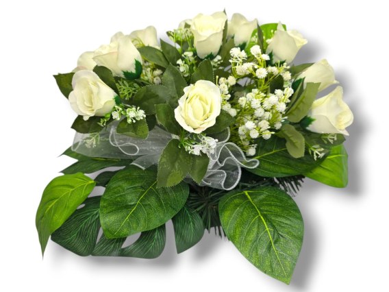 STROIK NA CMENTARZ KWIATY NA GRÓB POMNIK MISA Z OBCIĄŻENIEM BIAŁE RÓŻE