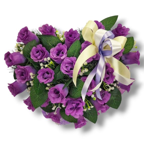 • STROIK NA POMNIK SERCE KOMPOZYCJA KWIATOWA FIOLETOWE RÓŻE NA GRÓB